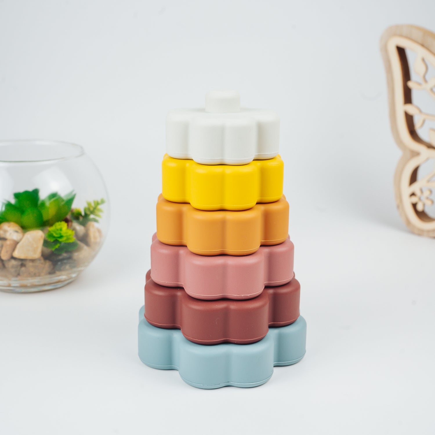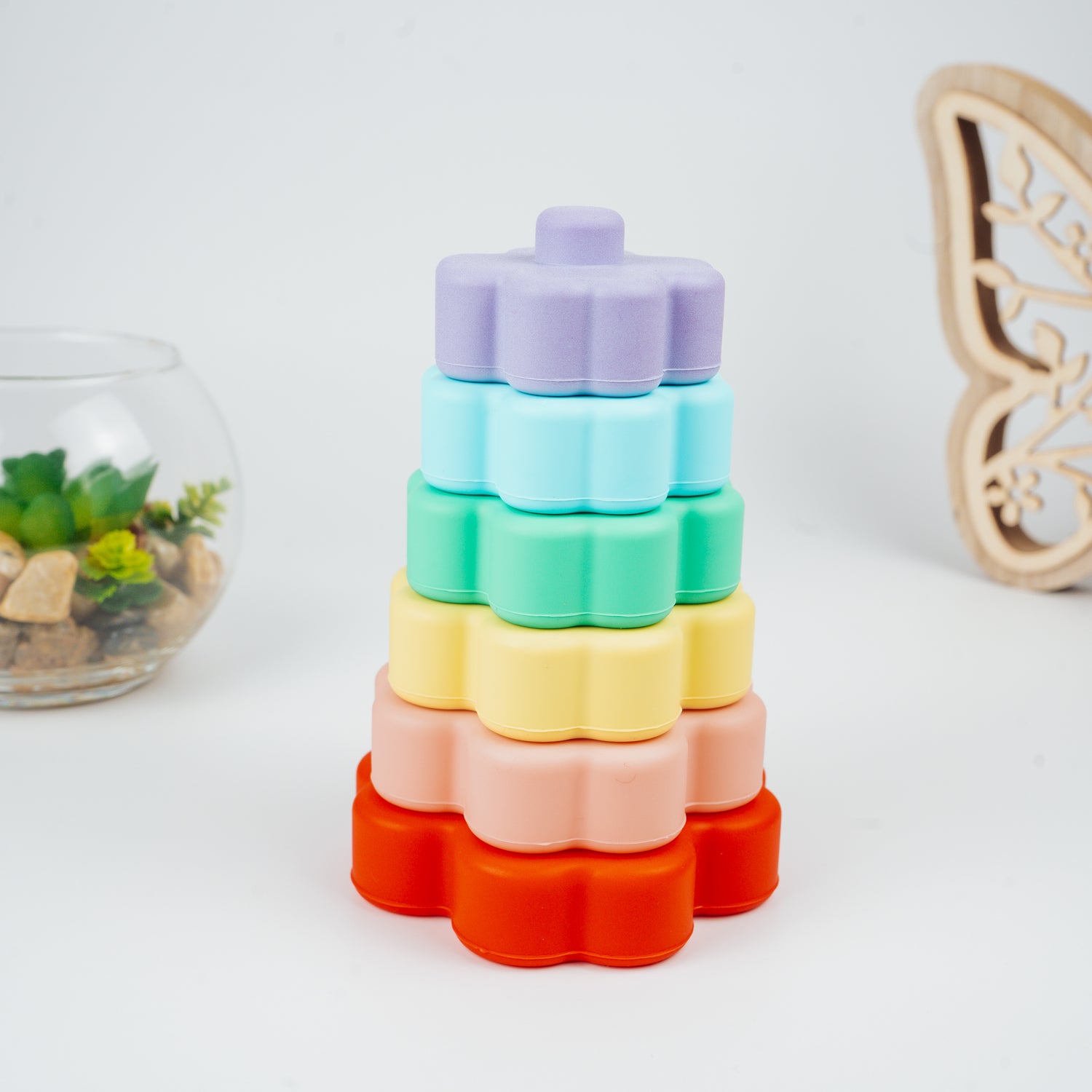 - Flower Shaped Design : Soft floral shapes that add a fun and aesthetic element to stacking and arranging pieces.