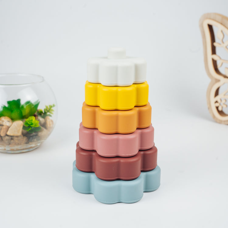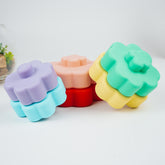 Give your child a fun and educational play experience with our Silicone Flower Stacking Toy . The stackable pieces can be used not only to create a tower, but also to stimulate imagination by building in different directions, as shown in the horizontal arrangement. The soft shapes and bright colors are perfect for encouraging the development of fine motor skills.