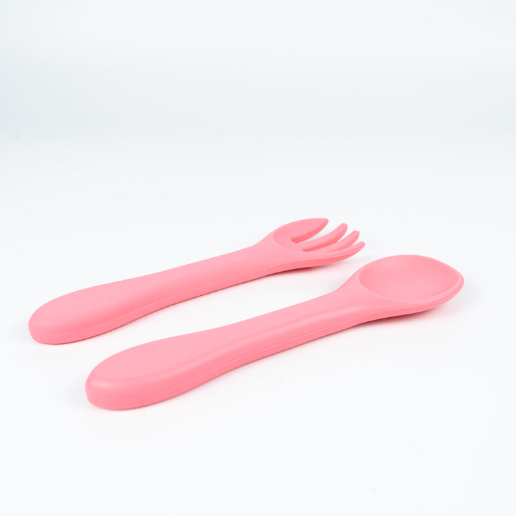 Make it easier for your child to learn to eat independently with this Silicone Spoon and Fork Set . Designed to be soft and ergonomic, this set is perfect for little hands and delicate gums, while being safe and durable for everyday use.