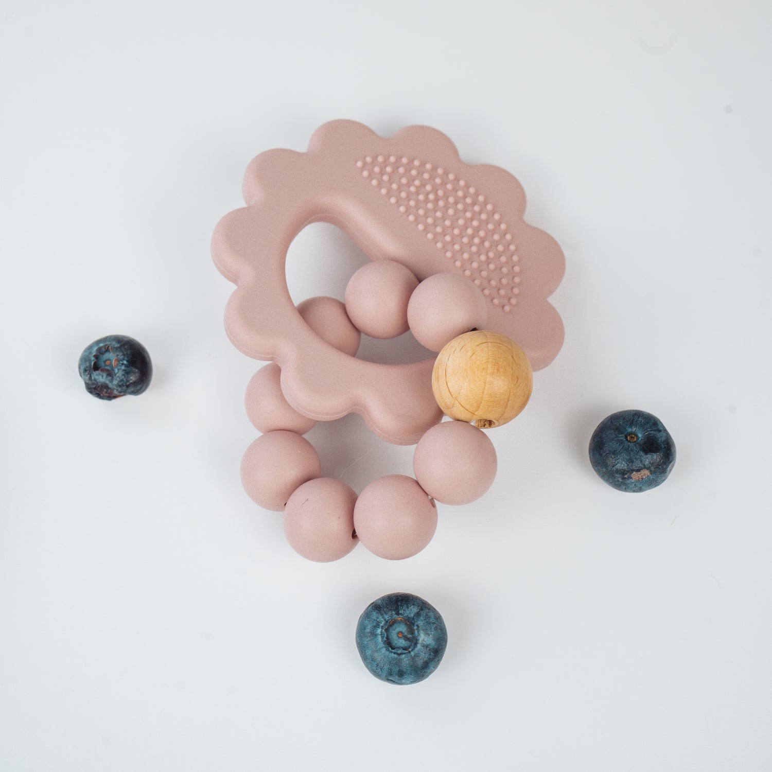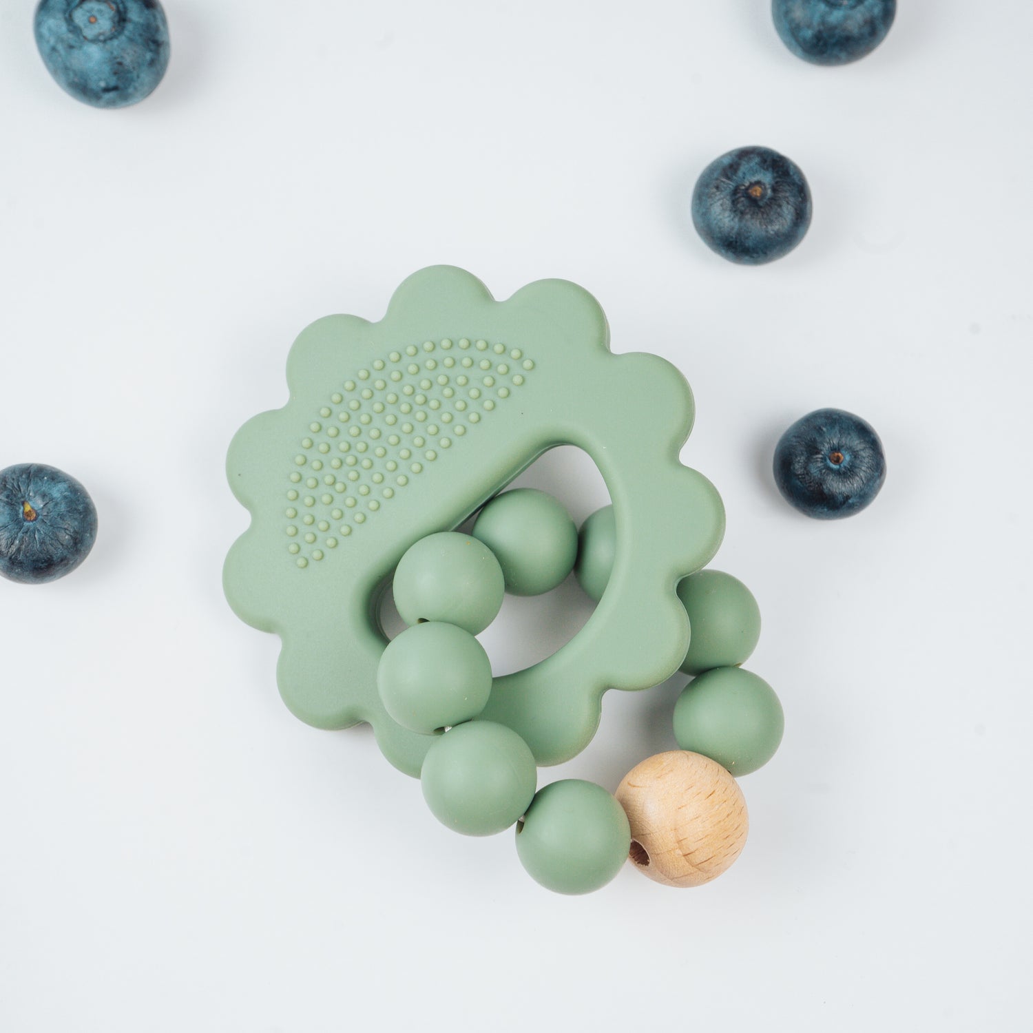 Add a soothing and playful touch to baby's teething with our Silicone and Wood Sensory Teether . Designed to provide both comfort and stimulation, this toy is a perfect companion to soothe your little one's sensitive gums.